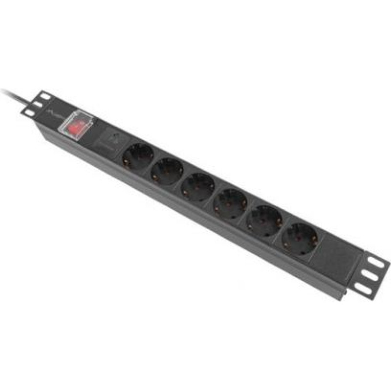 Lanberg PDU rack power strip 19 inch 1U 16A 6x230V schuko 2m black