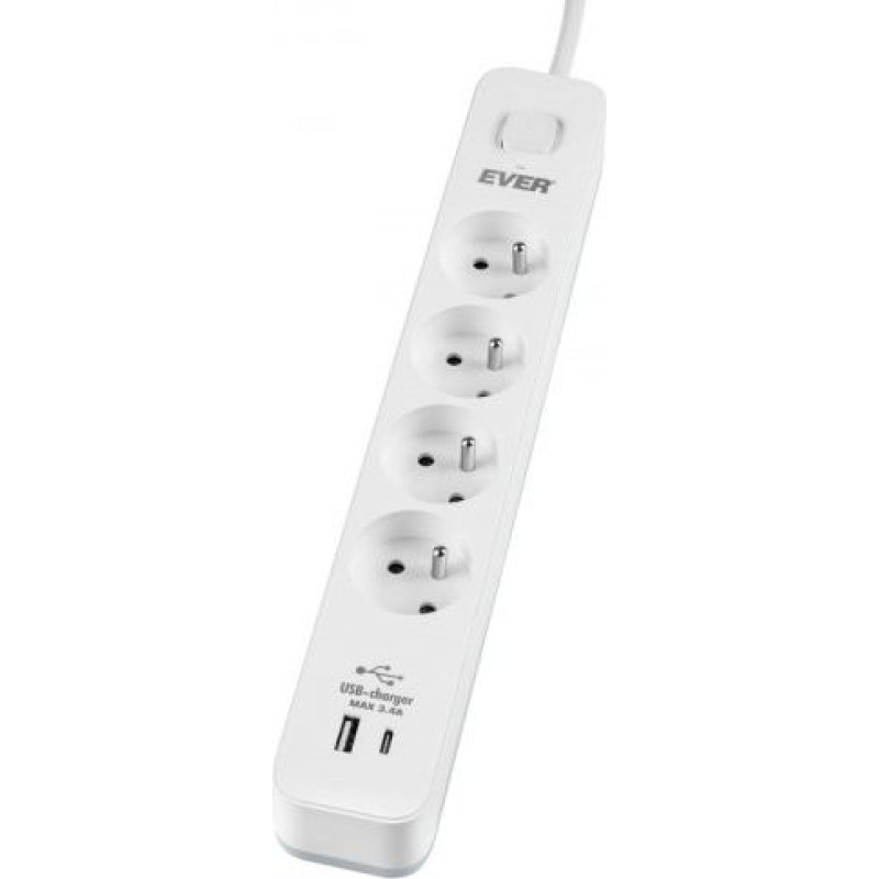 Ever Surge protection strip PROTECT 4PL 1A1C USB T/LZ12-PRO015/1000