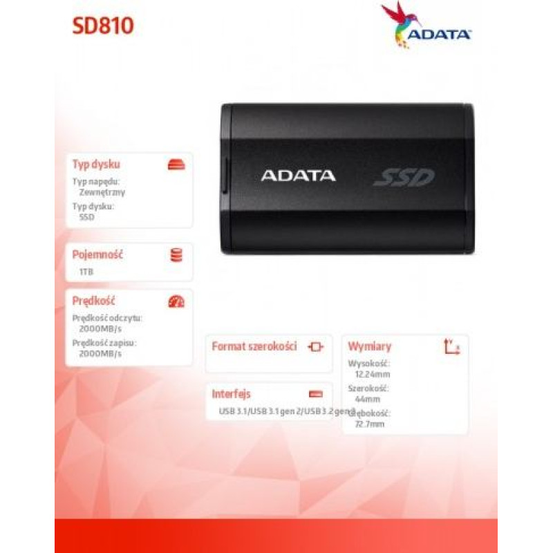 Adata Drive SSD External SD810 1TB USB3.2C 20Gb/s black