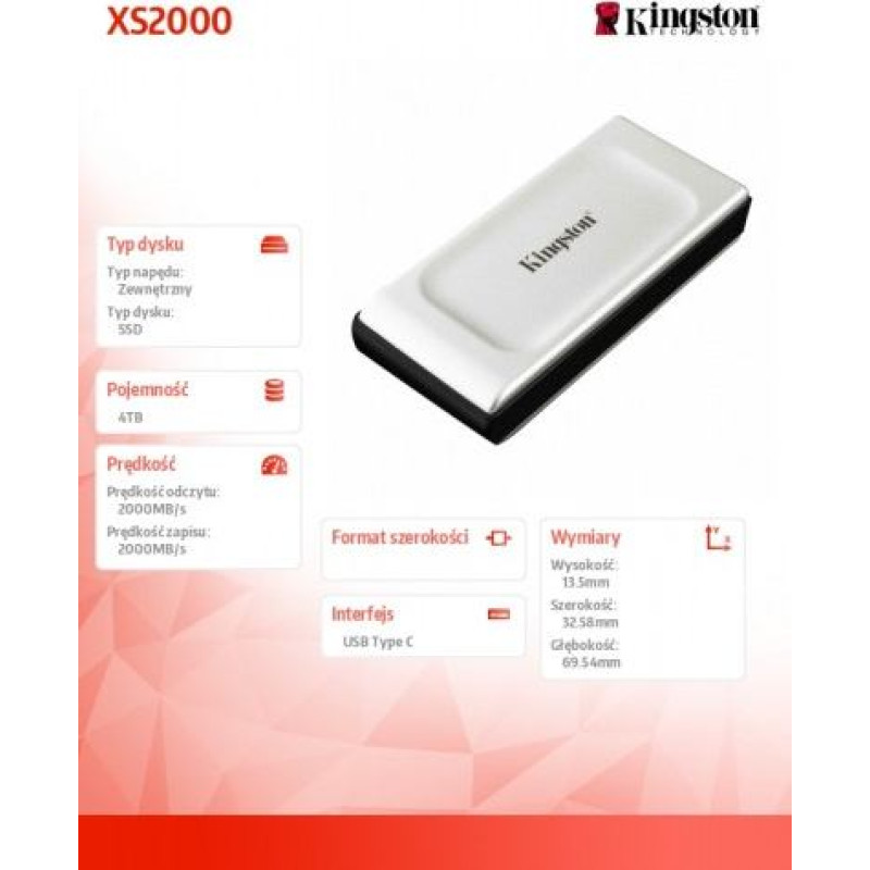 Kingston SSD disk XS2000 4000GB USB3.2 Gen2.2 external