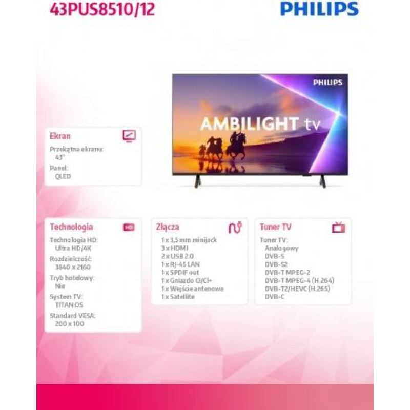Philips TV QLED 43 inches 43PUS8510/12