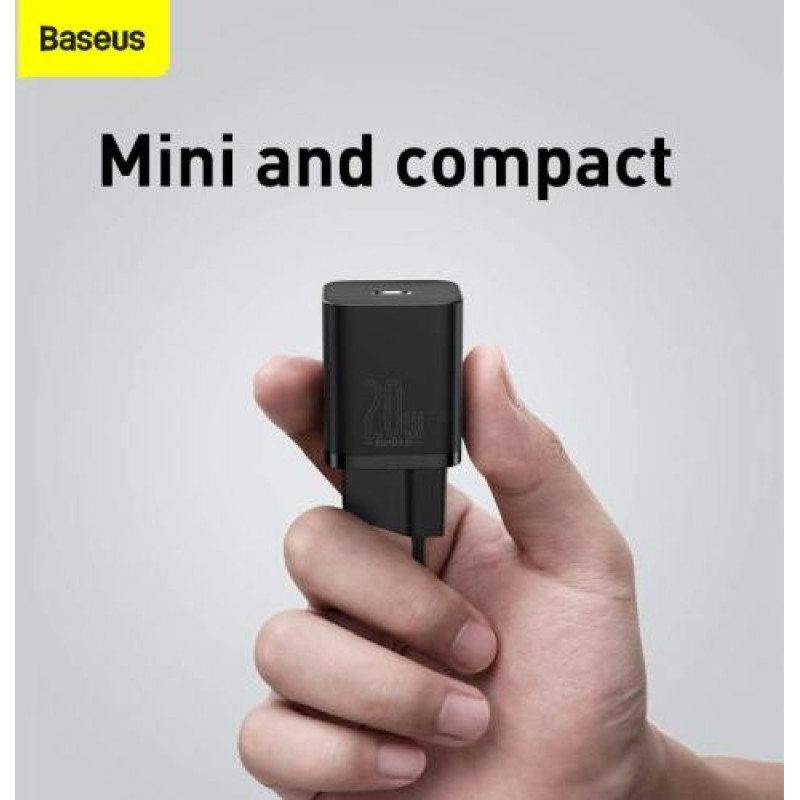 Baseus Travel Charger set Super Si 1C PD Fast charger 20W EU Black (CCSUP-B01)